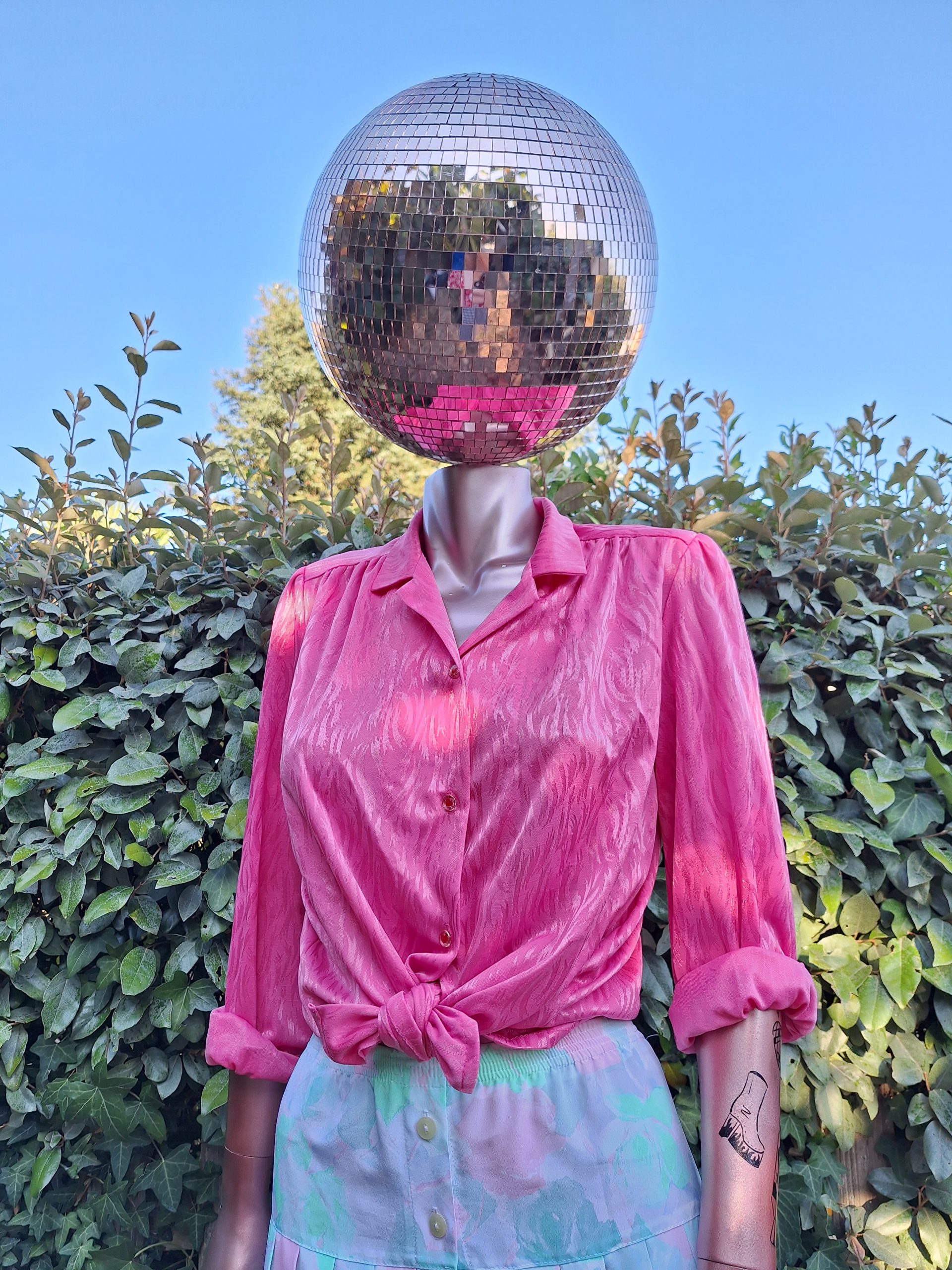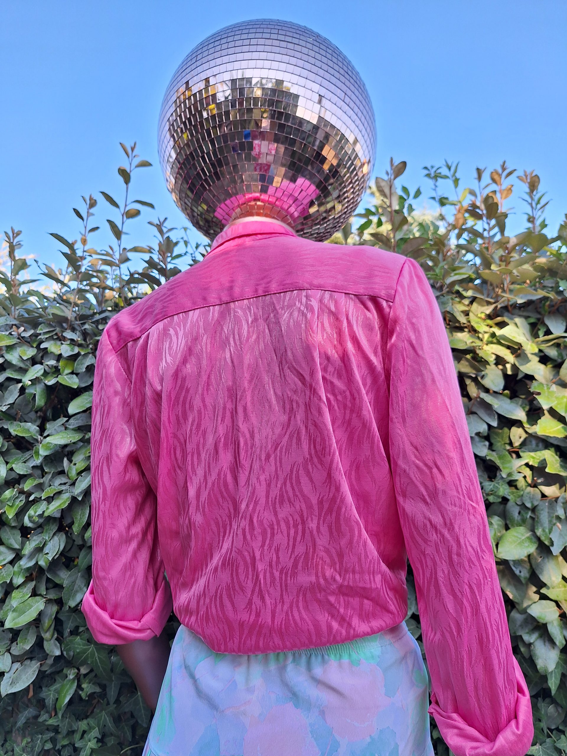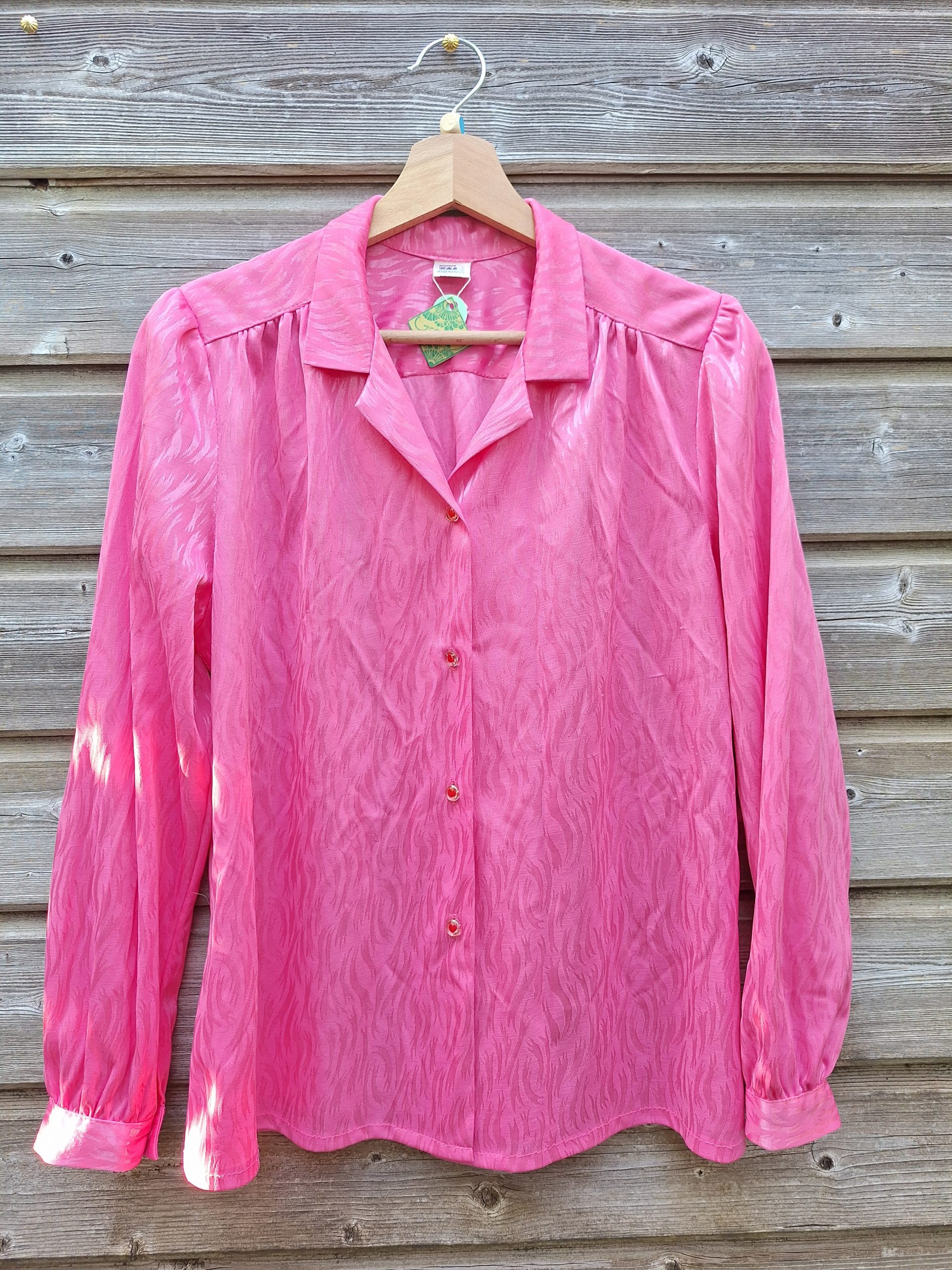 Chemise rose satinée avec petits boutons coeurs❤️