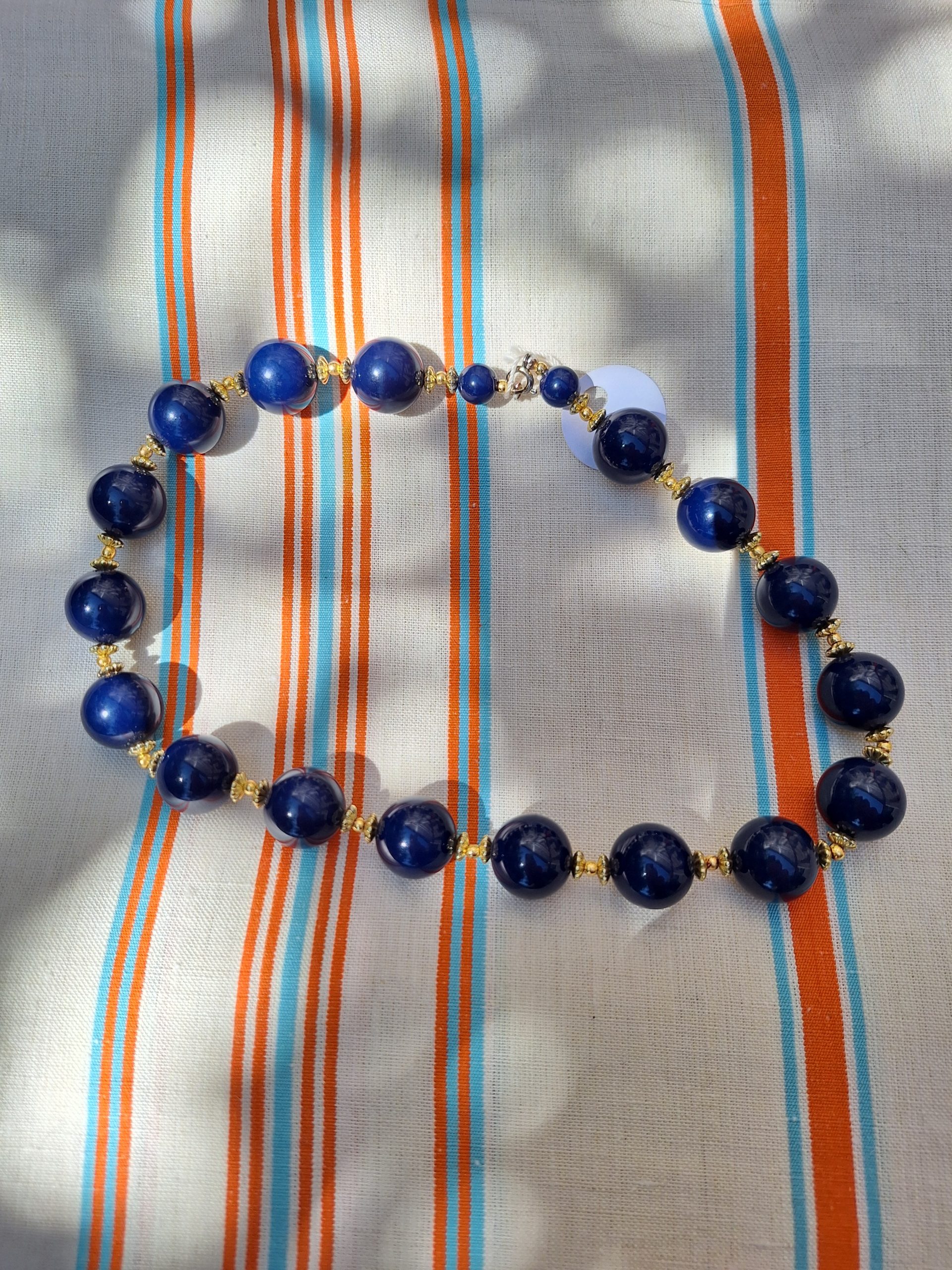 Collier perles bleues