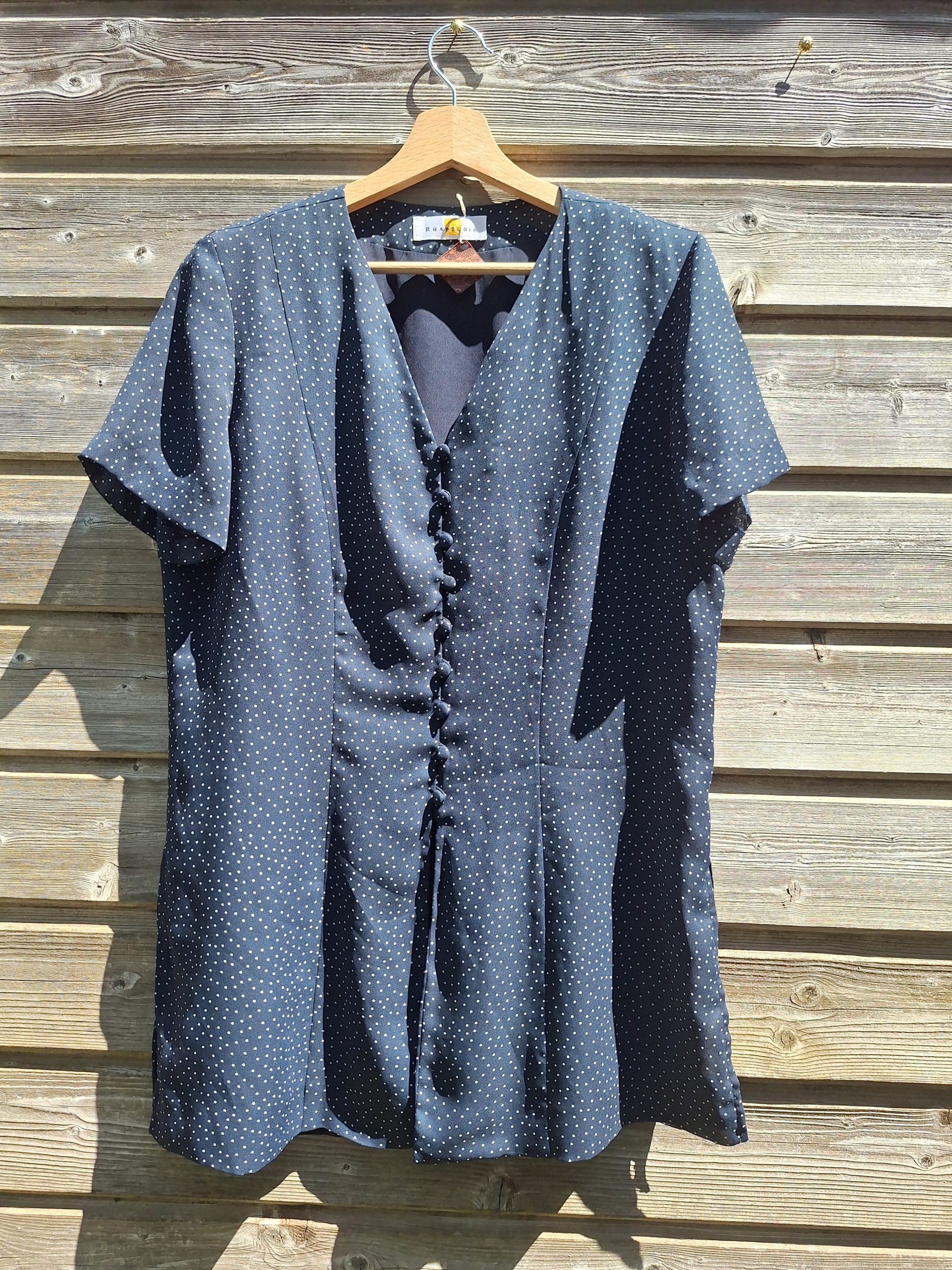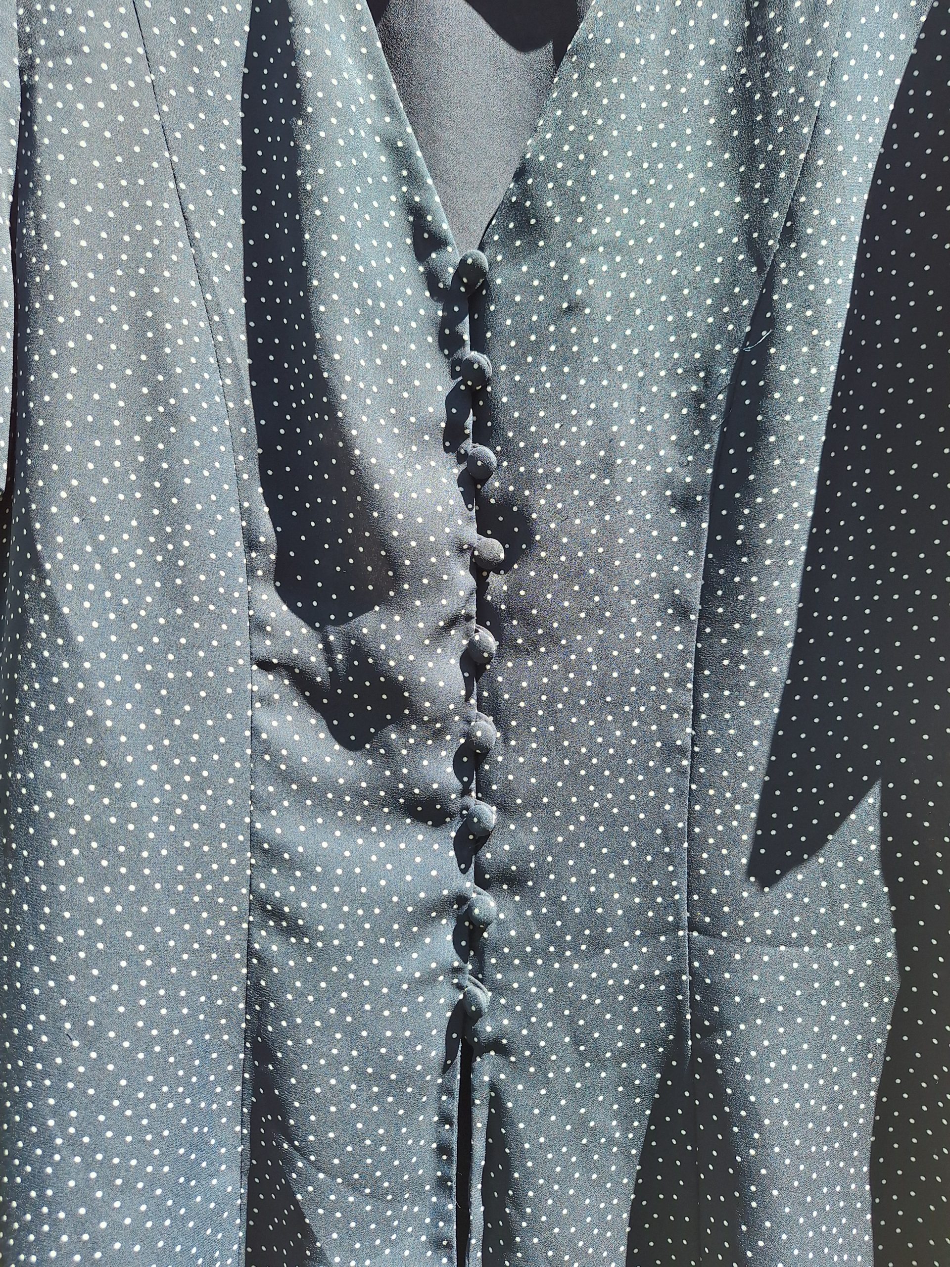 Petits boutons recouverts de tissus à pois.
