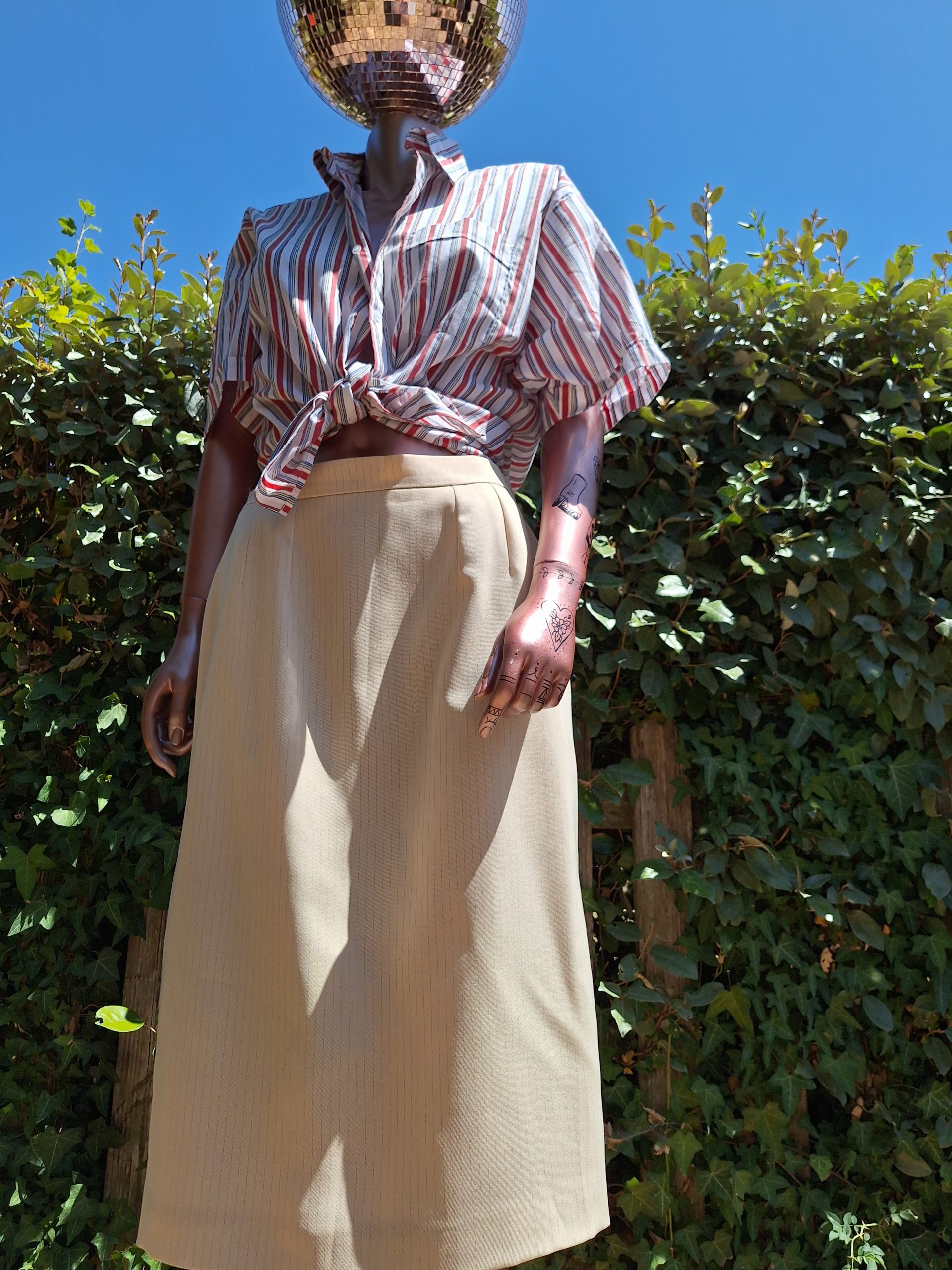 Jupe beige rayures