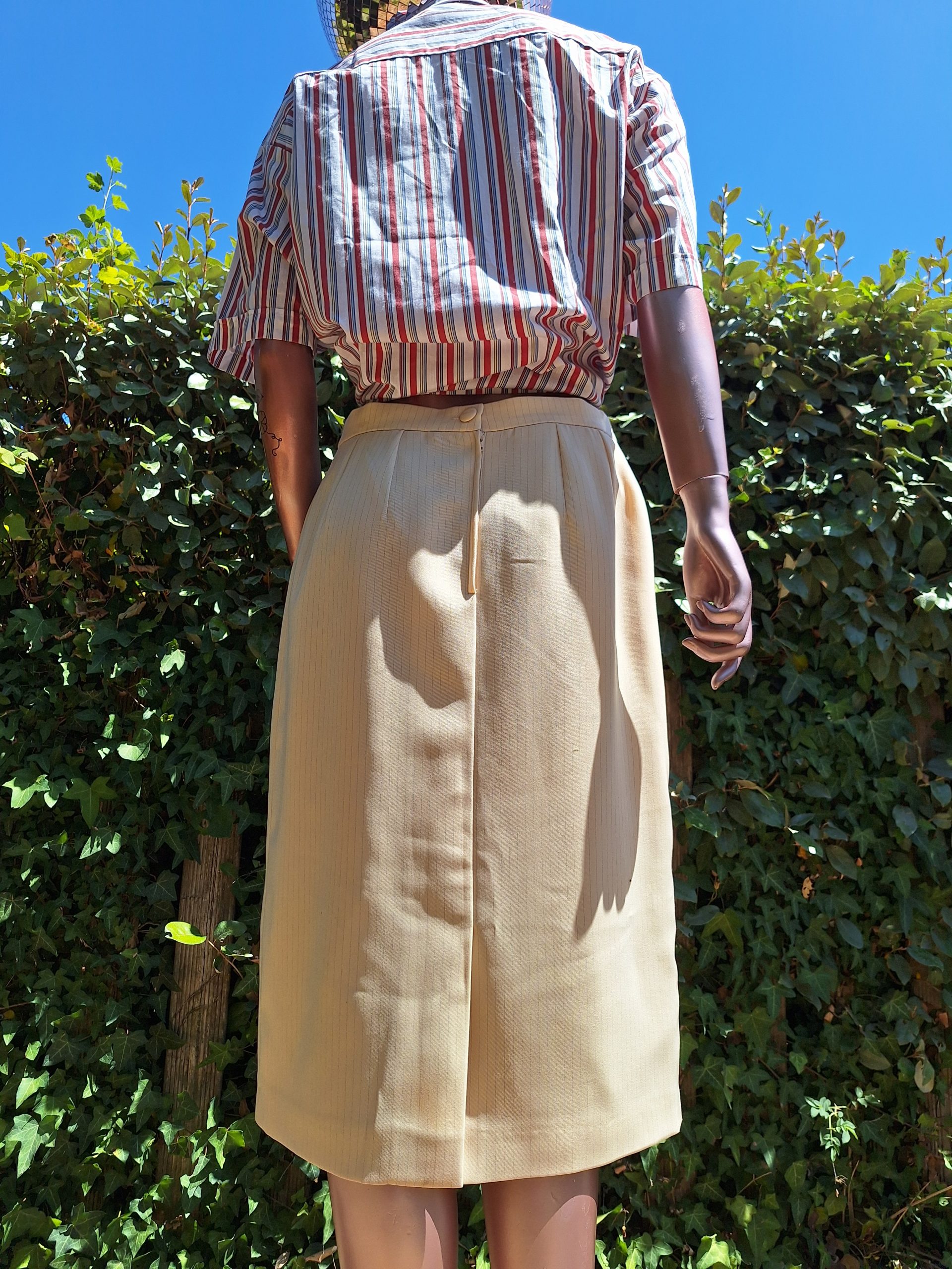 Jupe beige à rayures longueur genoux