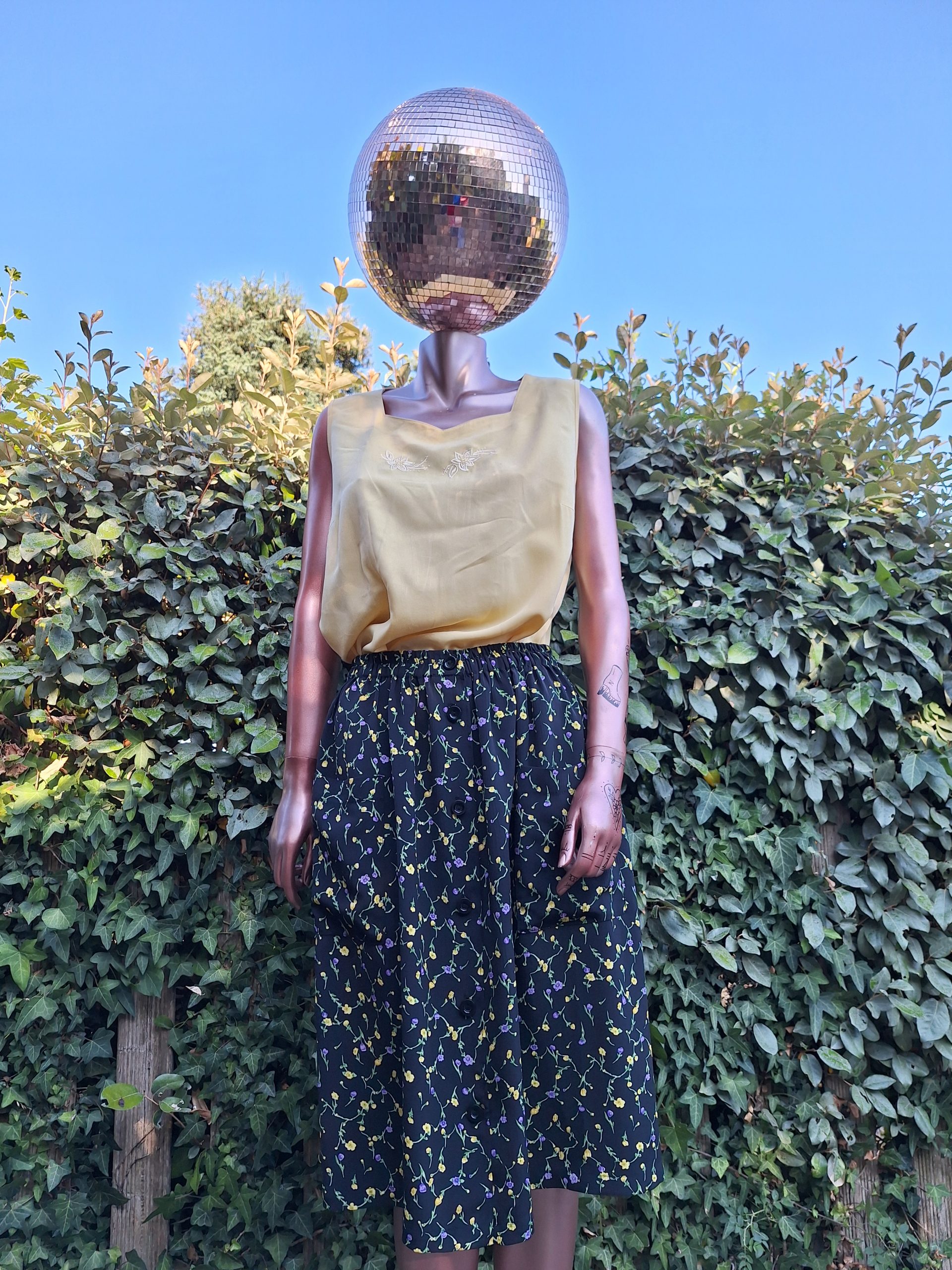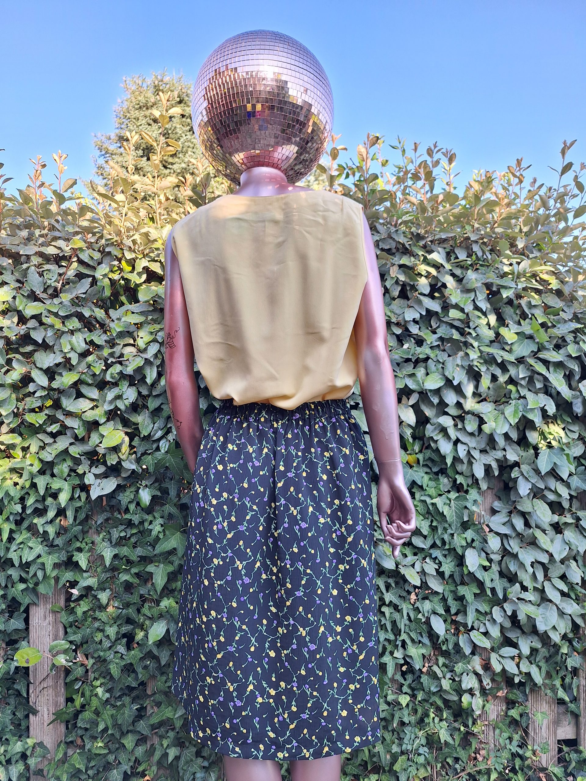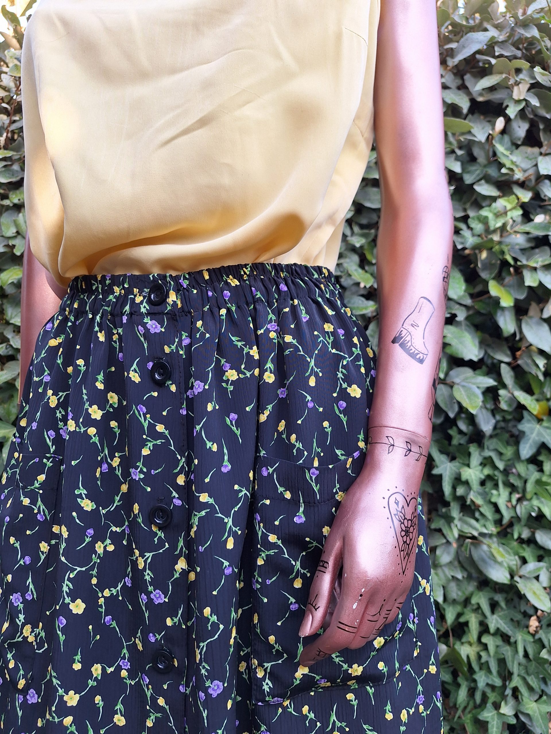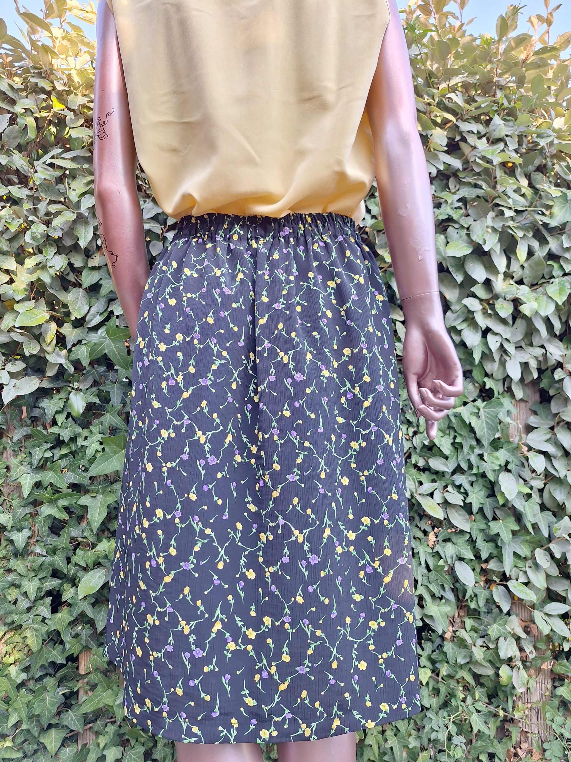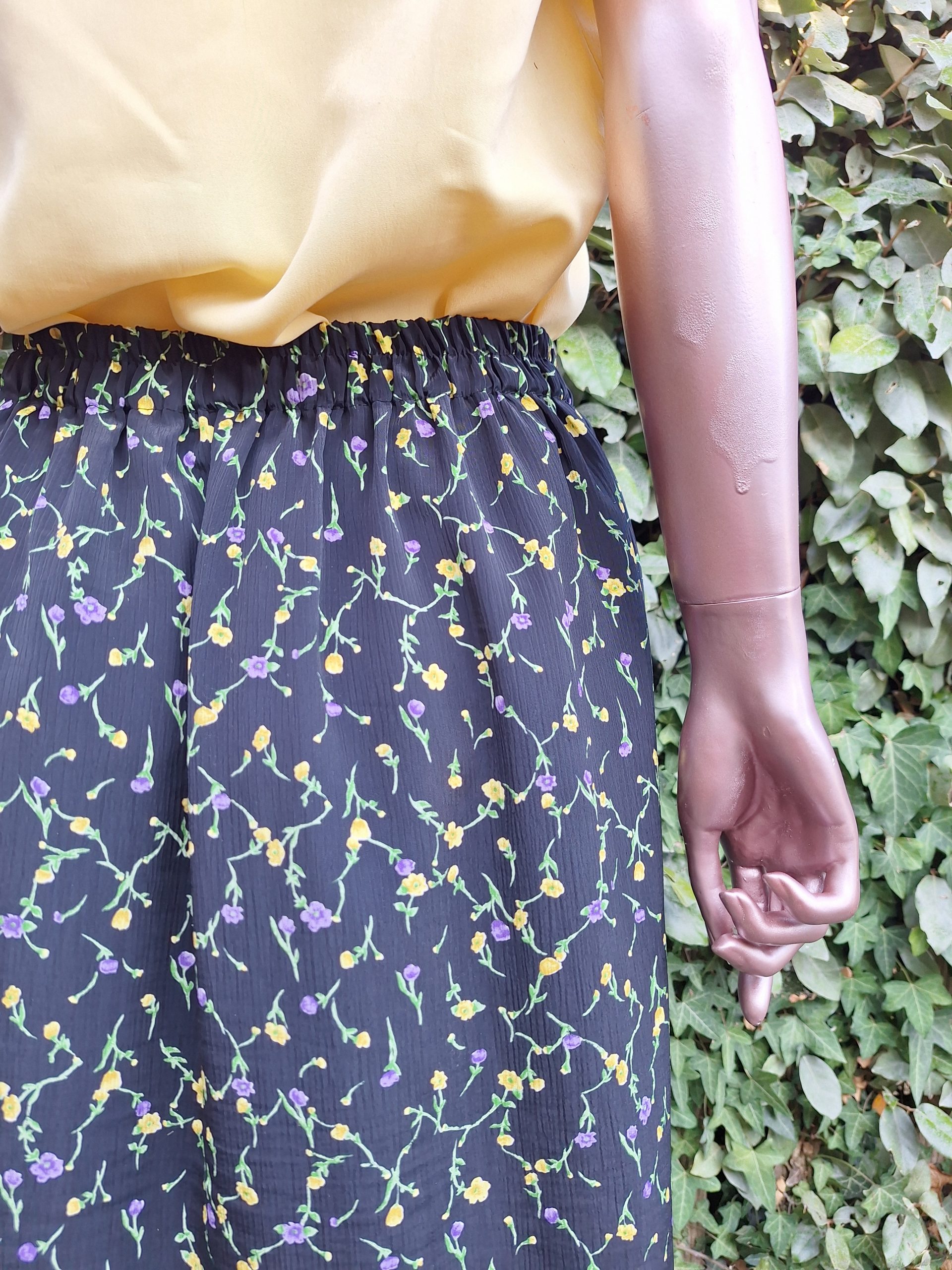 Jupe noire fleurs jaune lila