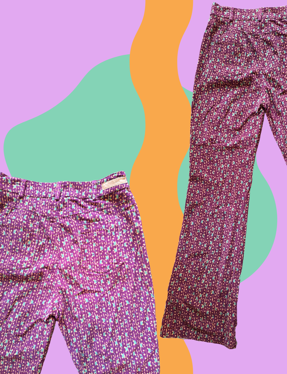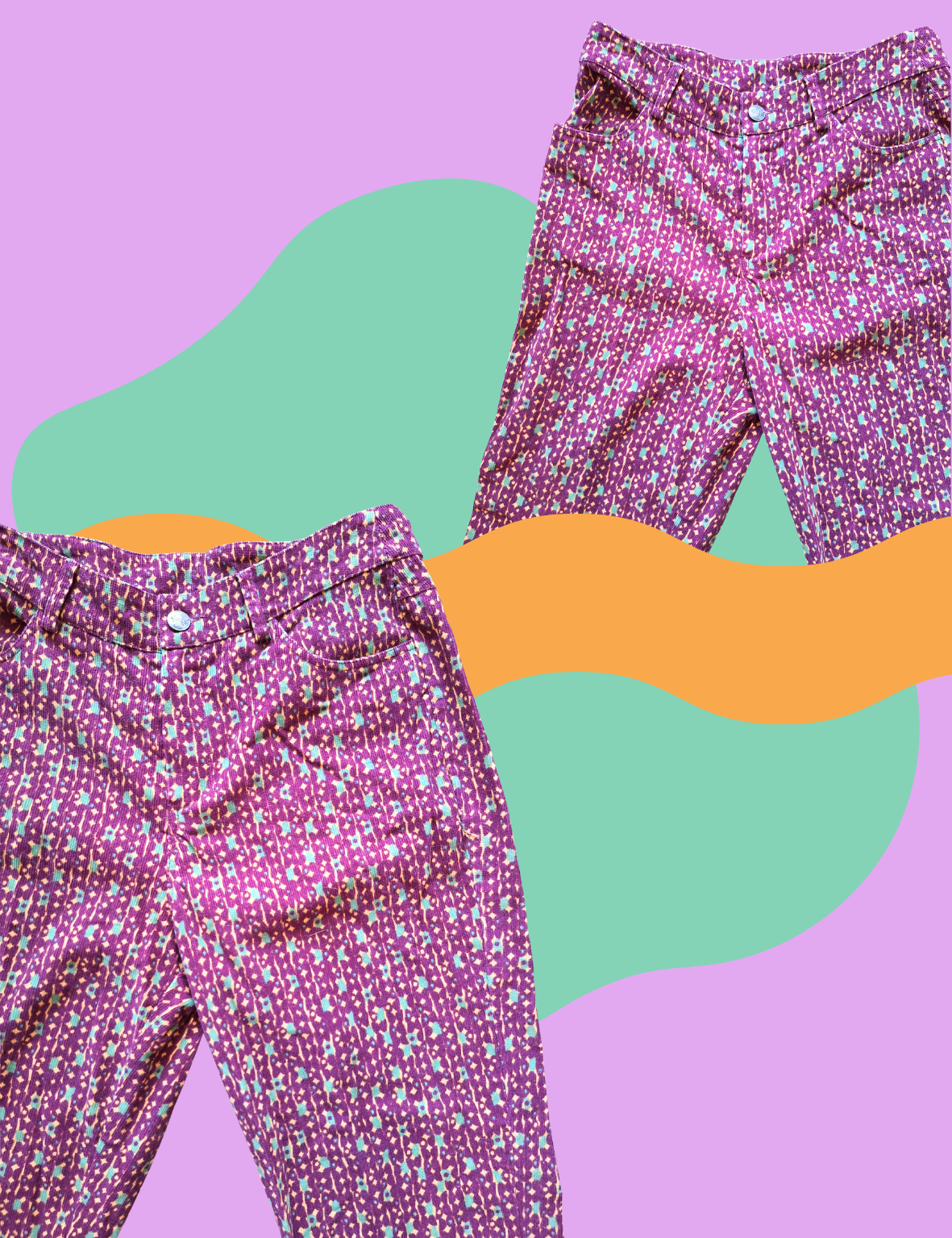 Deux poches avant et deux poches arrières, passage de ceinture 4 cm. Bas de jambes évasés.