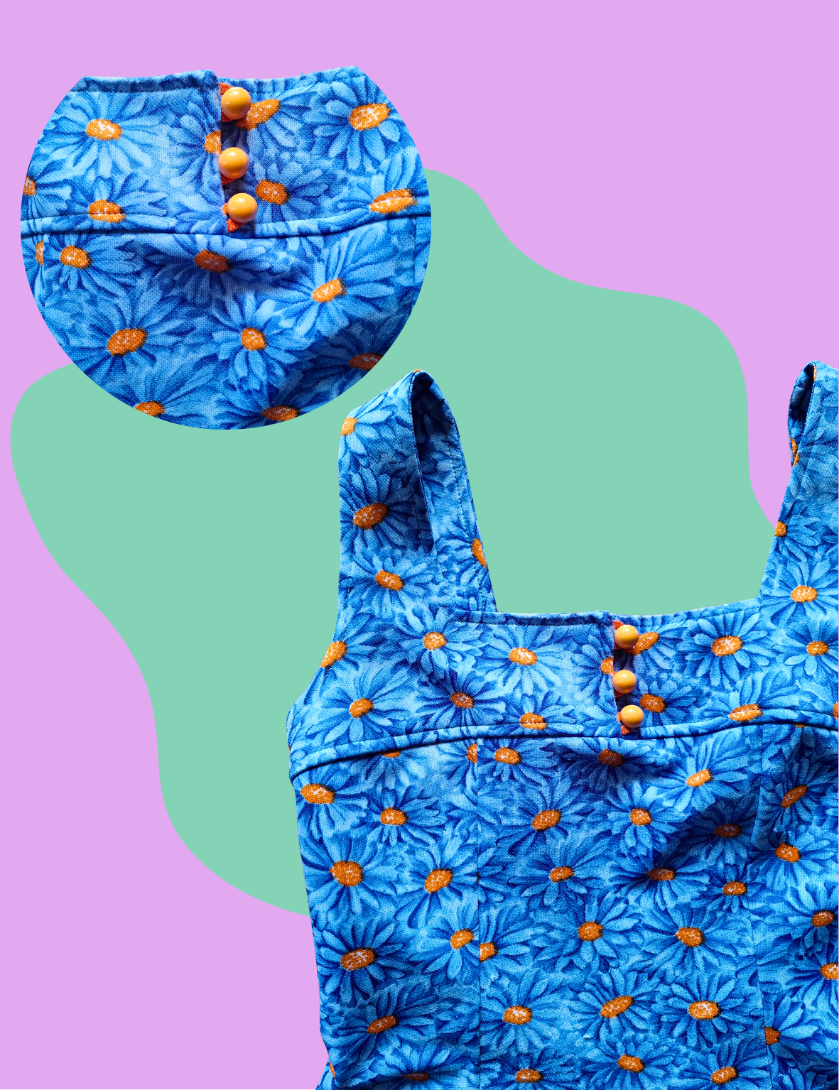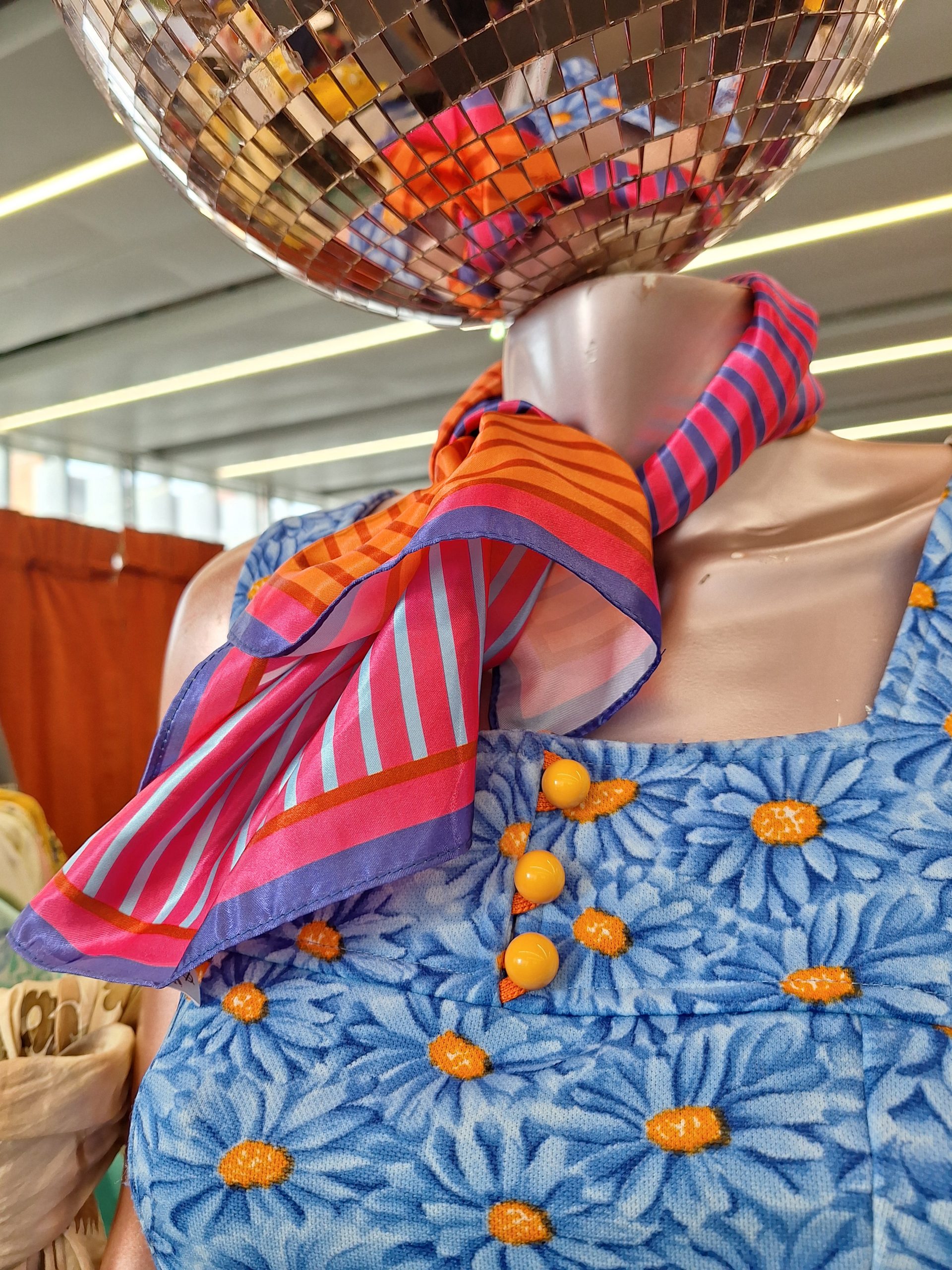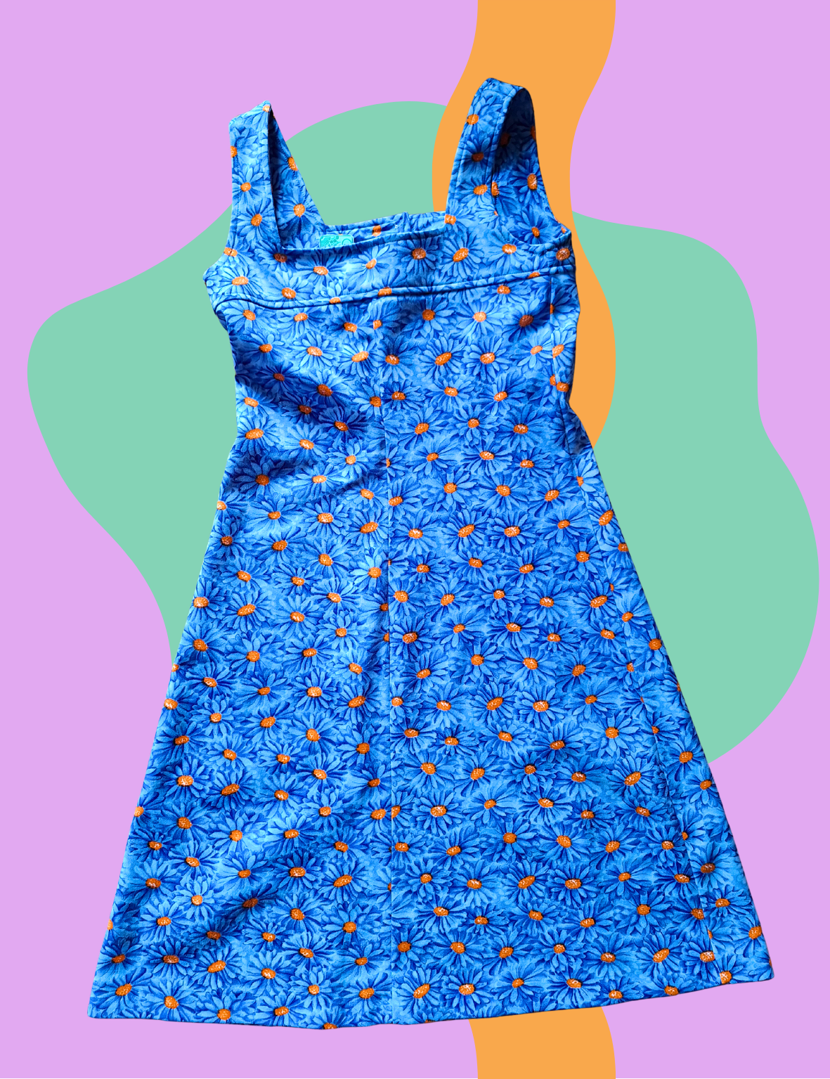 Robe fleurs vintage fleurs bleues et oranges