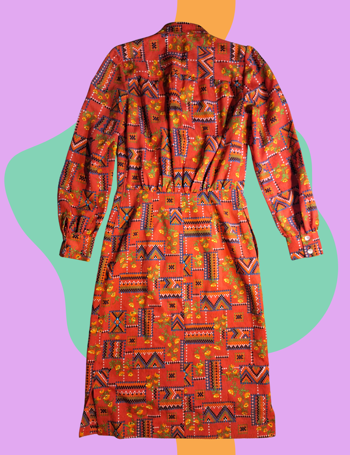 Robe cousu main. Fermeture sur le côté gauche et épaules un peu bouffantes.