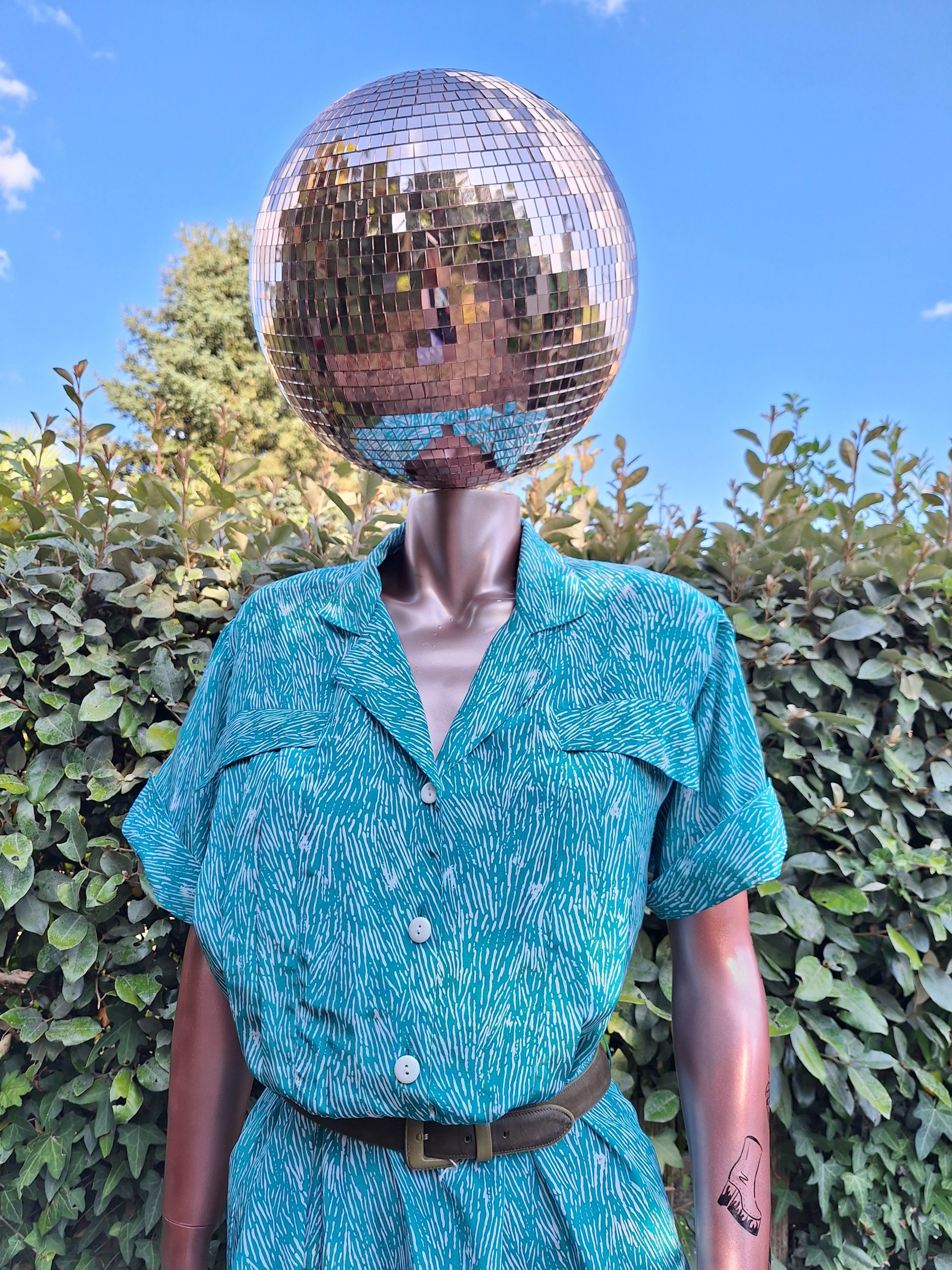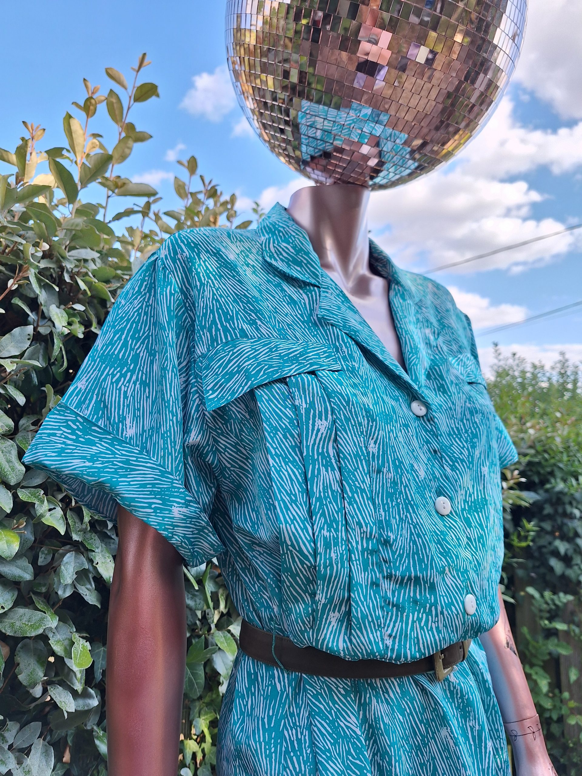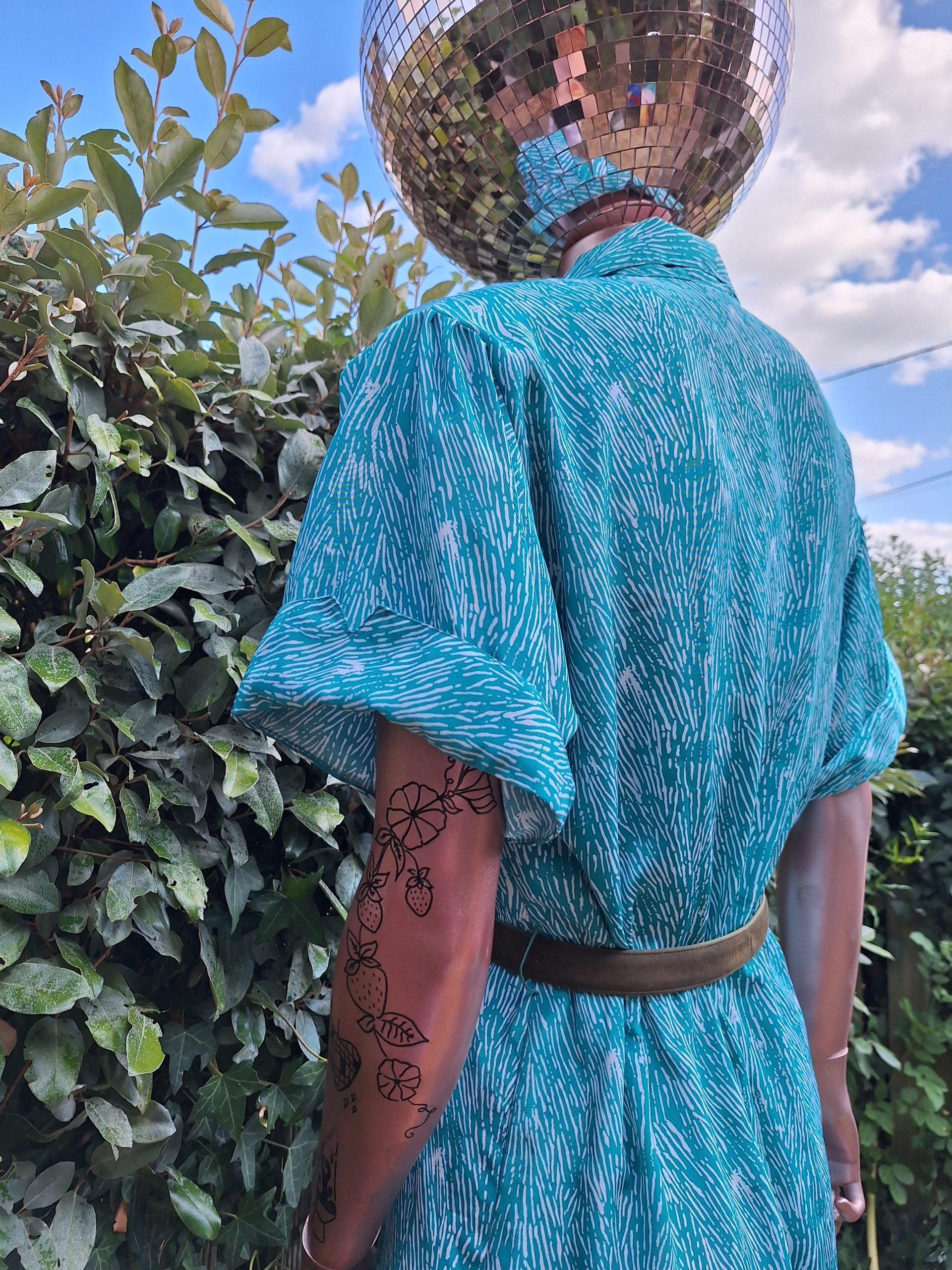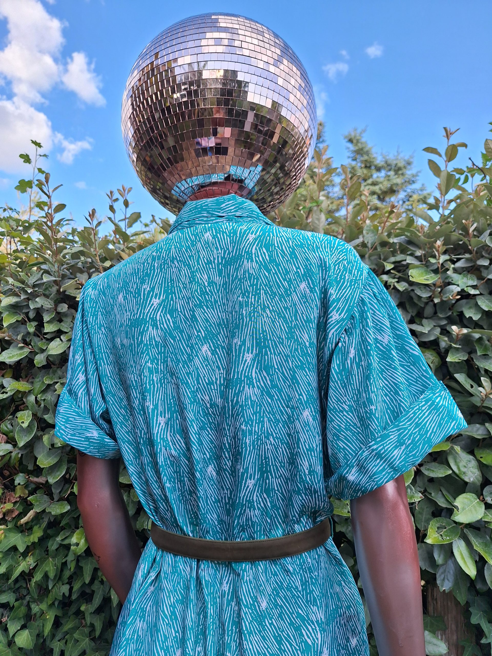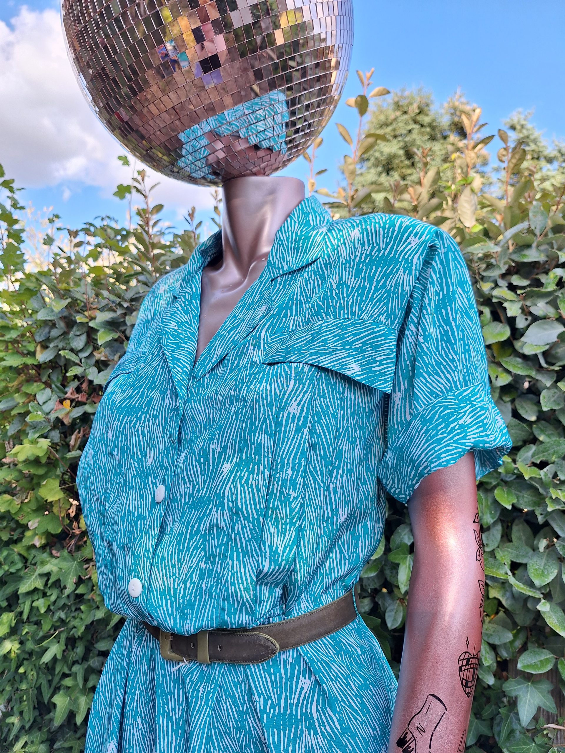 Petits boutons sur le buste, manches retroussées et fausses poches sur la poitrine.