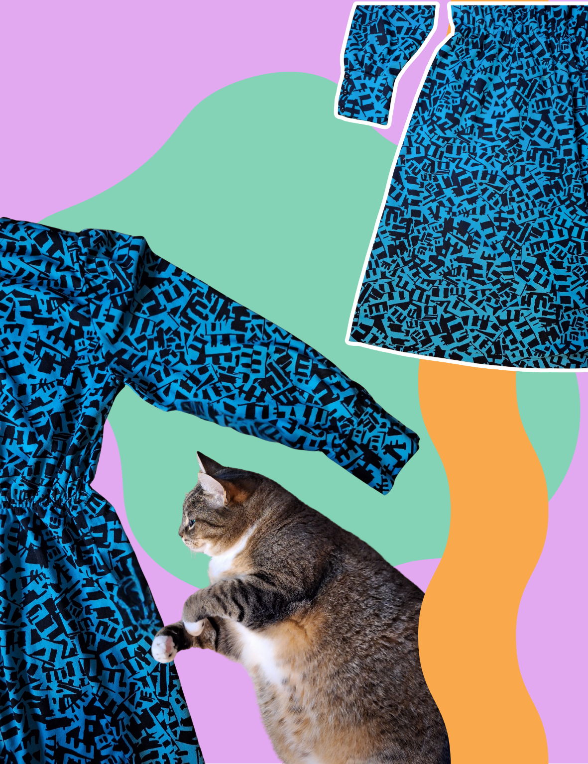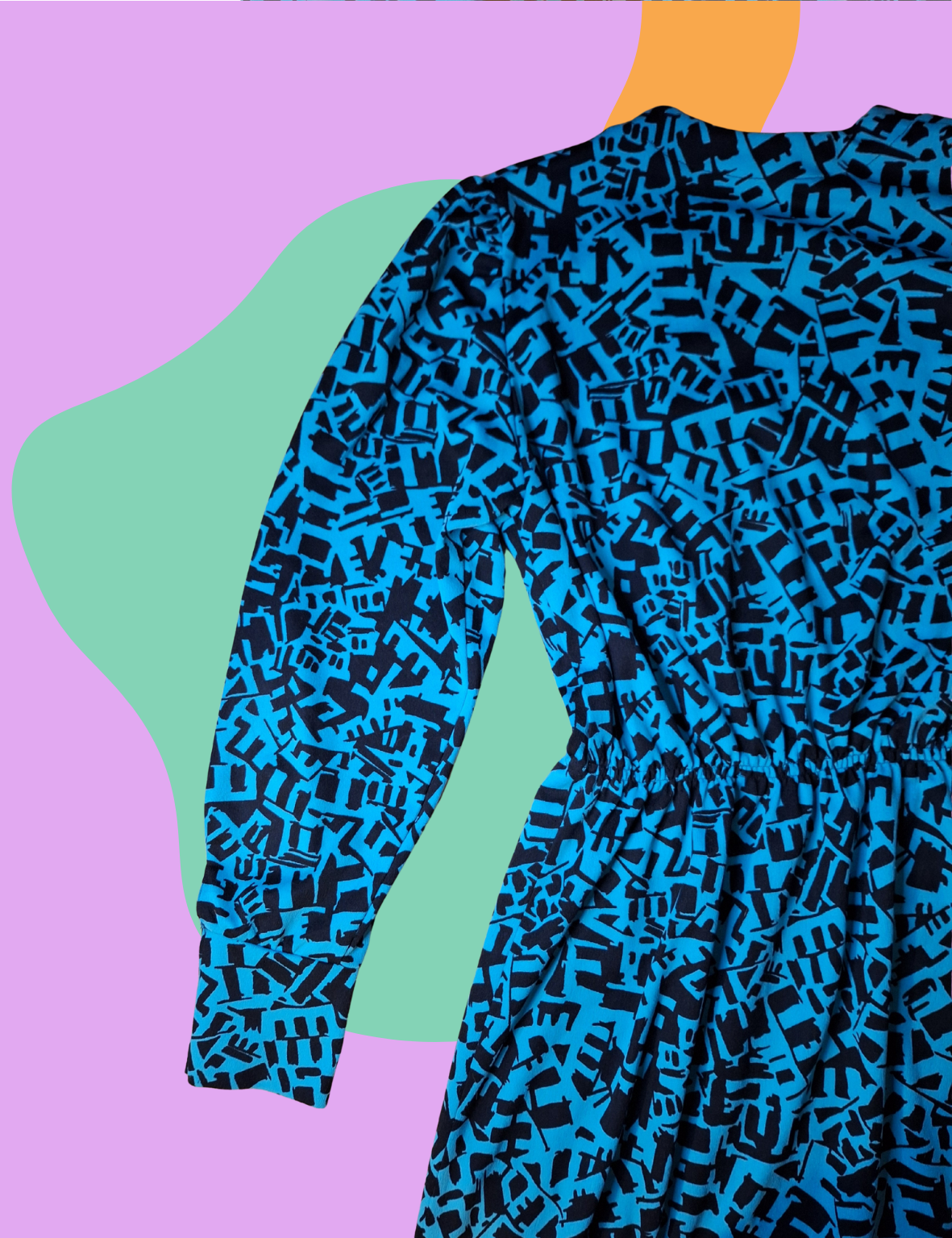 Olana m’a tellement collé pendant ces photos que j’étais obligée de la garder…😼 Jolie robe vintage verte et noir coupe très 80s